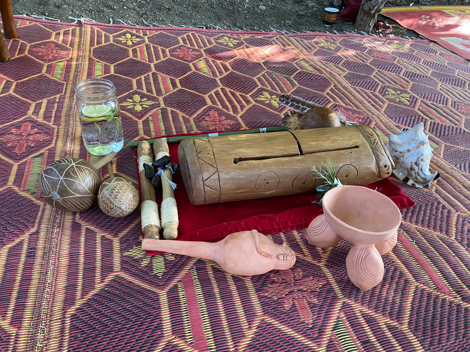 This year, we held a ceremony in the sacred space created when we share our stories. We combined apprenticeship and ritual. In this ceremony, Akutu brought a brief episode of our Remembering Series to honor the sun and ancestors. She taught us how to sing and play a Kiskeya ceremonial Afro-Taino song performed around the summer solstice on traditional Taino instruments.